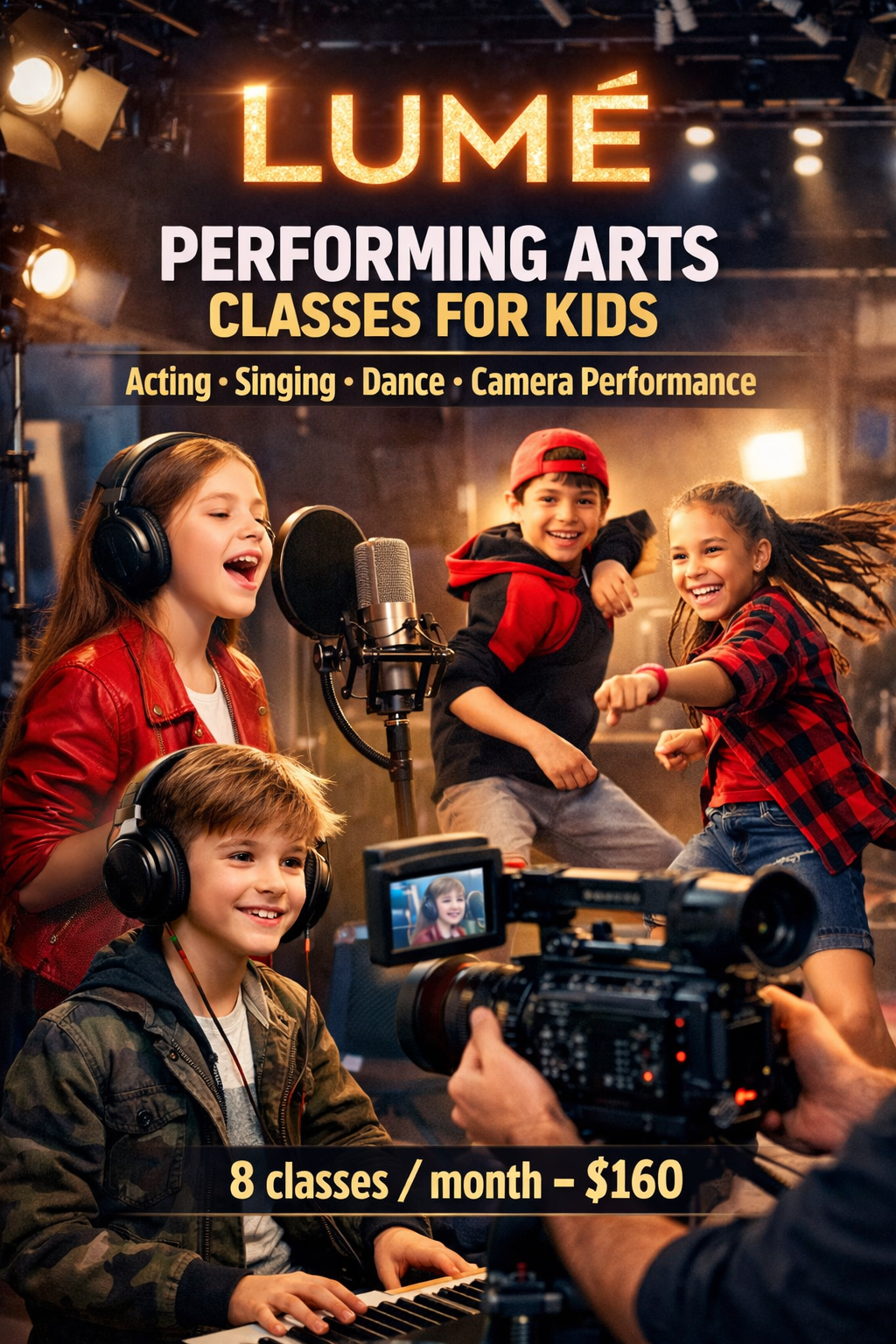 Creative Studio at LUMÉ Film Studio. Spring enrollment is now open for performing arts classes for kids — a chance for your child to participate in real film and music projects.