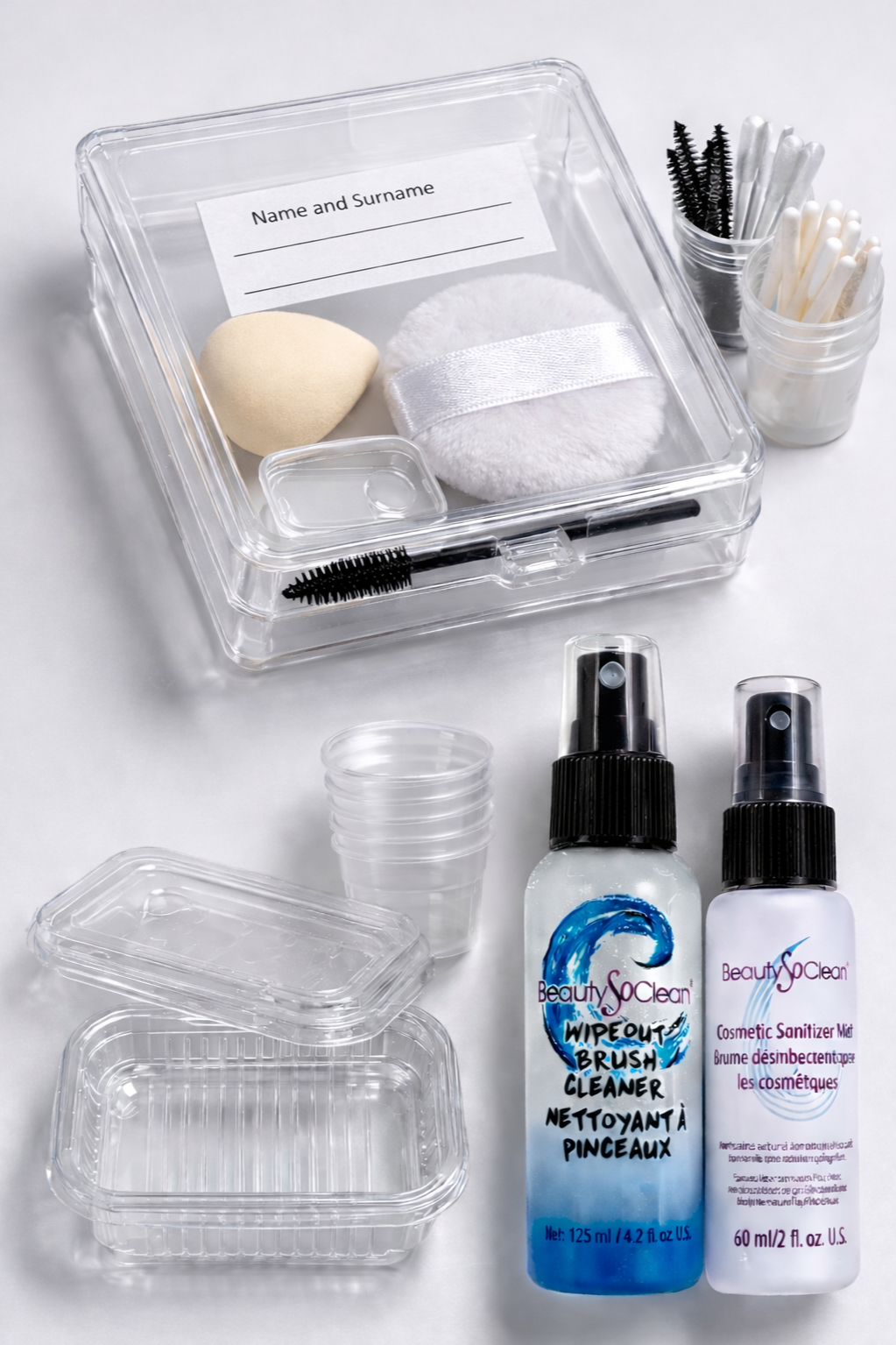 • Professional hypoallergenic disinfectants intended for use in the film and television industry are utilized (including BeautySoClean for cosmetics and brushes).